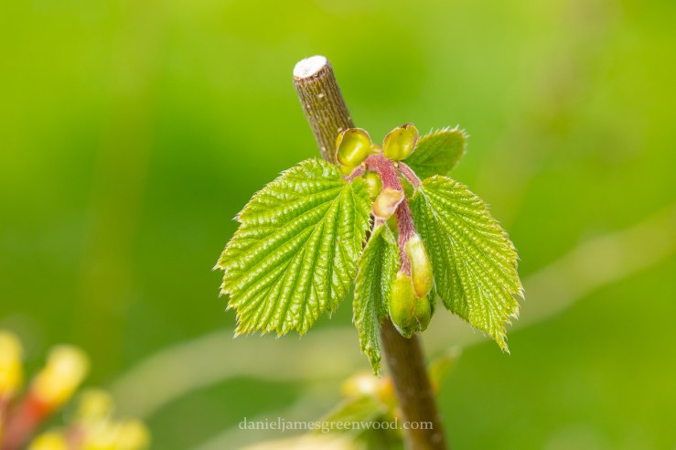 Hazel is also in leaf. I love their small leaves when first appearing. You can see where I topped this sapling last year. I have also recoppiced it since to form a hedge.
