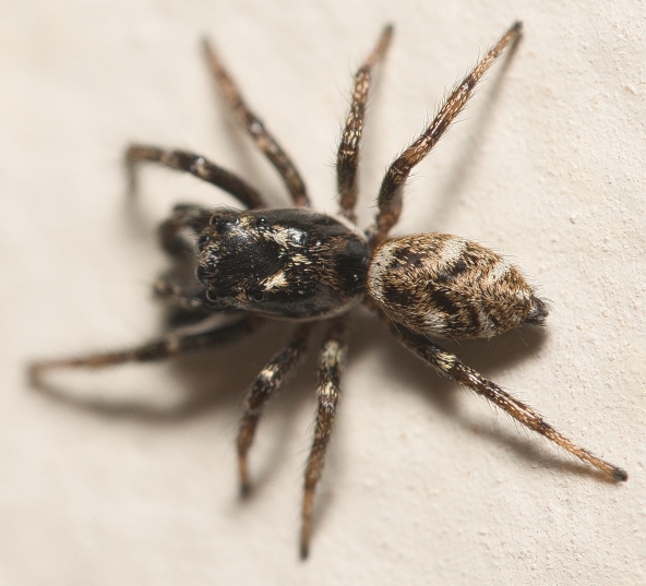 My favourite group of spiders are the jumping spiders, the salticids. The first jumper I ever saw or photographed was one of the zebra spiders, of which we have three species in the UK. You can only identify them with microscopic assessment of their genitals, which is beyond this blog. Regardless, I found a zebra spider on the wall of my living room, which I now appreciate is just a giant invertebrate trap. I have actually also had a starling find its way in.